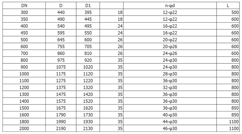 公稱通徑:DN300~2000